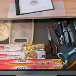 宿泊施設には台所が備わっており,自身で食事を作ることができます. この宿泊から歩いてすぐほどのところにBusbahnhofバス停があります.